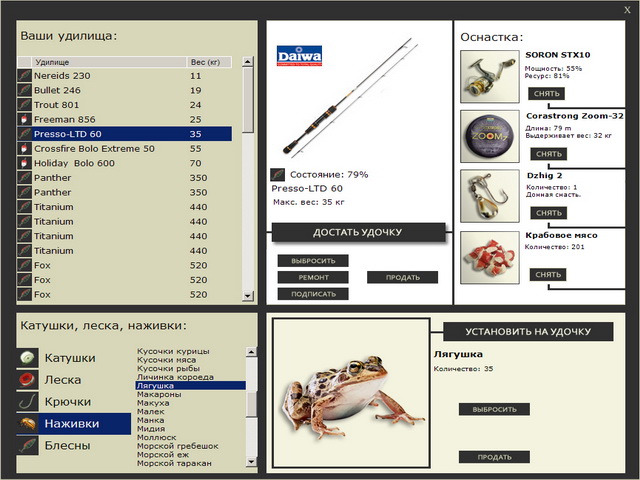 15. ТЕСТОВОЕ НОВШЕСТВО: Для удобства тех, кто играет в форумные турниры, в игру внедрена новая система сохранения результатов лова (Турнирная программа больше ни к чему, игра сама сохраняет ваши результаты)