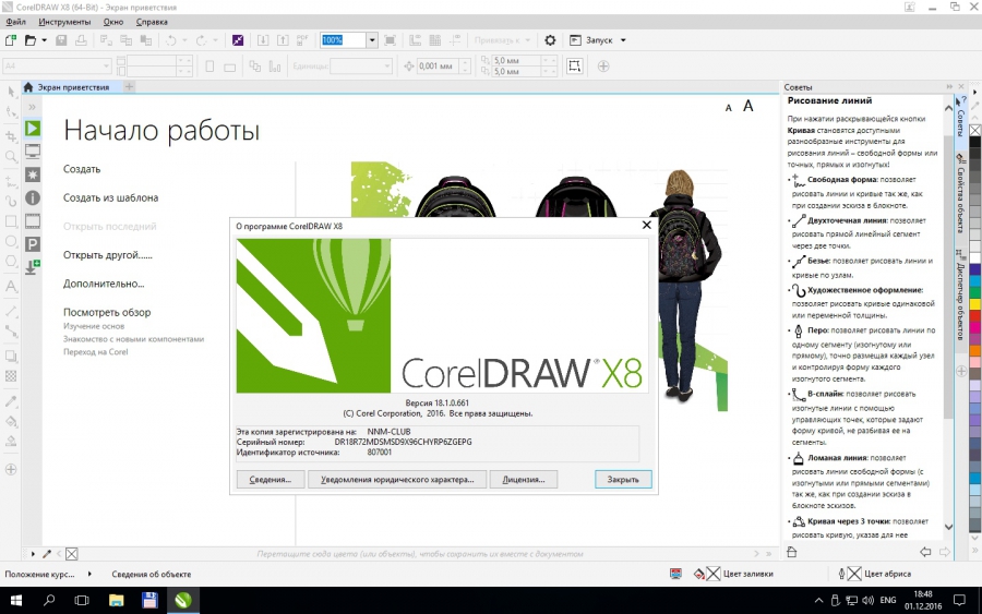 Новое! Помощь при начале работы. Работать с CorelDRAW Graphics Suite X8 легко как начинающим пользователям, так и опытным профессионалам. Вашему вниманию предлагается обзор новых функций и возможностей пакета, а также основ работы с продуктом. Кроме того, для пользователей Adobe был разработан специальный тур, который поможет им быстро освоиться и приступить к работе с CorelDRAW Graphics Suite. Рабочее пространство, настроенное в соответствии с вашим творческим процессом, создаст благоприятные условия для продуктивной деятельности, а встроенные универсальные обучающие инструменты и высококачественный контент позволят вам улучшить любой проект.