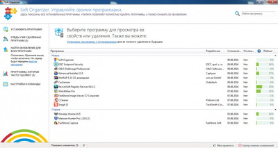 Описание: Зачастую после удаления программ в системе остаются следы от них: ненужные файлы и папки на дисках и записи в реестре. Это происходит даже в том случае, если приложение удалялось "по всем правилам": с использованием собственного деинсталлятора (инструмента для удаления программы, созданного его разработчиками). Программа Soft Organizer предназначена для решения этой проблемы: она позволит полностью удалить ненужное приложение из вашей системы.