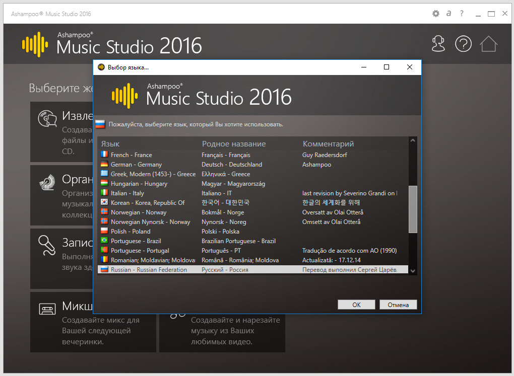 Название программы: Ashampoo Music Studio Версия программы: 6.1.00.11 Последняя версия программы: 6.1.00.11 Адрес официального сайта: Ashampoo Язык интерфейса: Русский, Английский Лечение: не требуется (инсталлятор уже пролечен) Тип лекарства: замена файлов