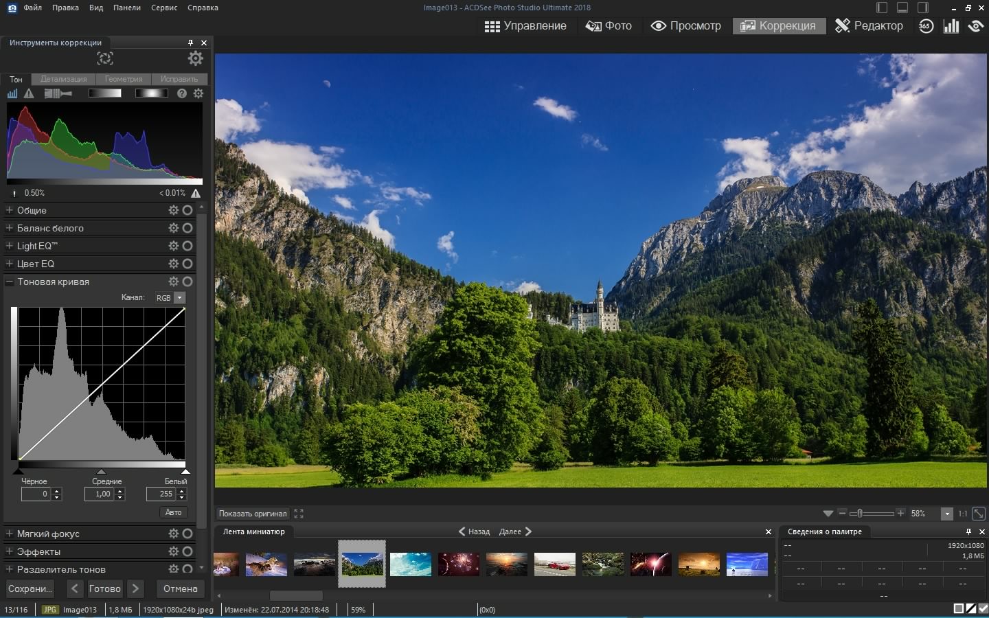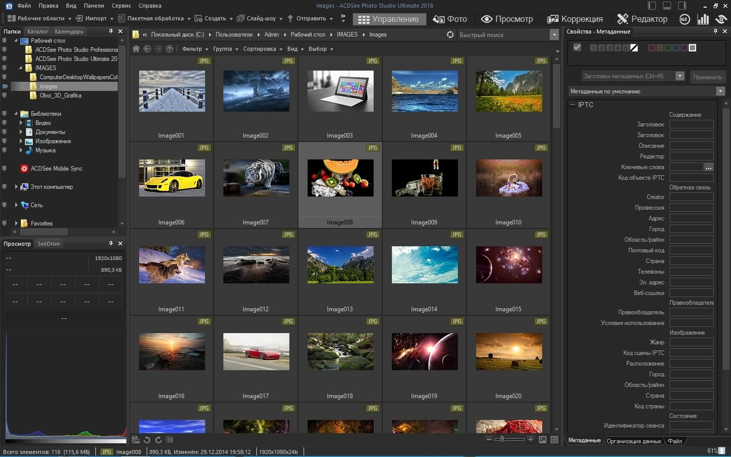 ACDSee Photo Studio Ultimate 2018 сочетает в себе поддержку слоев, поддержку GPU-ускорения обработки изображений, поддержку прозрачности со всеми функциями регулировки изображений из режима редактирования. ACDSee - функциональная программа, рассчитанная как на профессиональных фотографов, так и на любителей. ACDSee позволяет работать с цифровыми фотографиями, RAW-изображениями и поддерживает более 100 форматов графических файлов. Также программа осуществляет быструю пакетную обработку большого количества файлов с эффективным визуальным методом присвоения изображениям метатегов. Кроме того, ACDSee Pro позволяет отрегулировать цветовые каналы, исправить артефакты фотографий, добавить "водяные знаки", работать с IPTC-метаданными, архивировать графические коллекции в ZIP-файлы, записать на CD или DVD и многое другое.