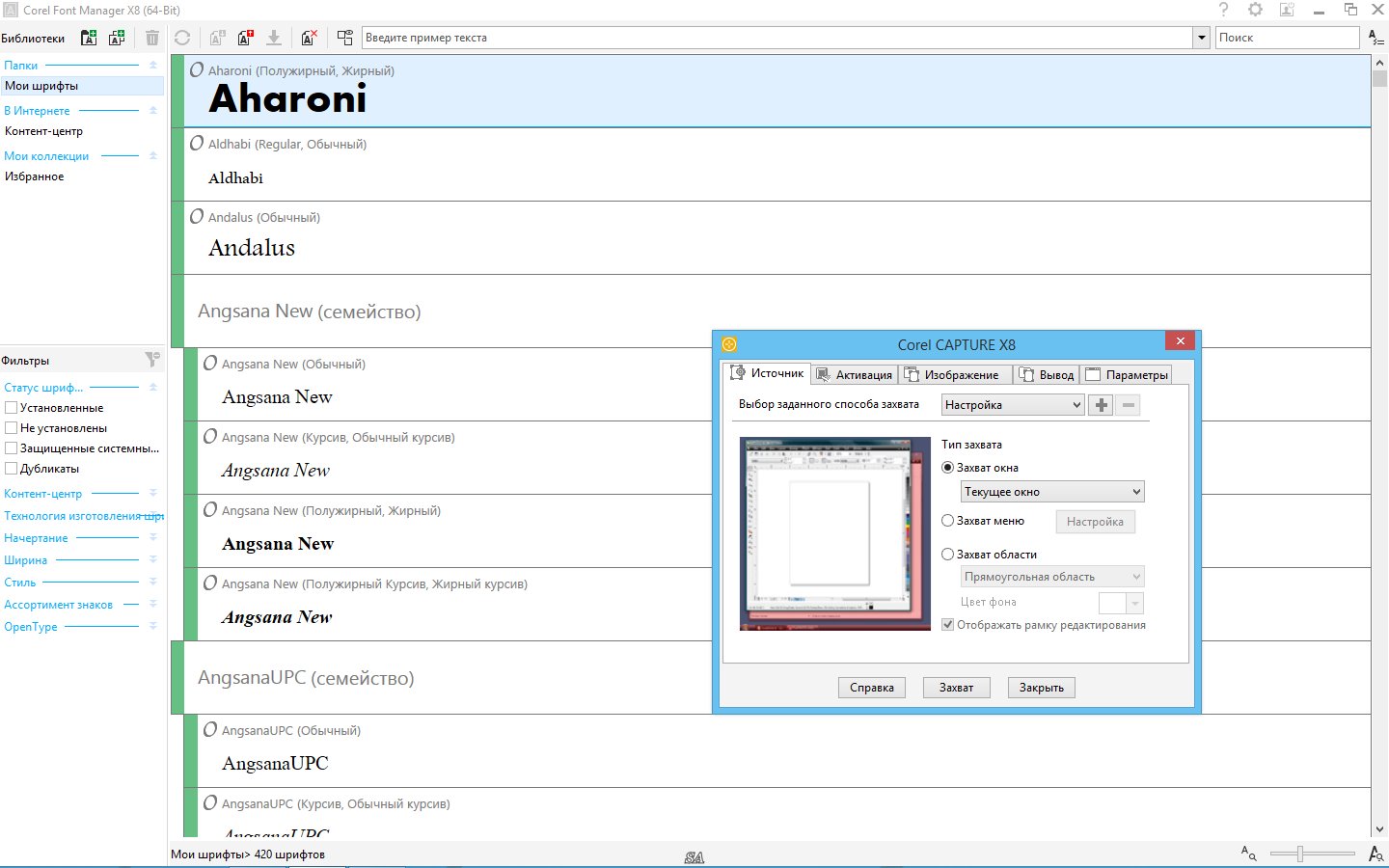 Corel Font Manager X8 — приложение для управления шрифтами TrueType и OpenType